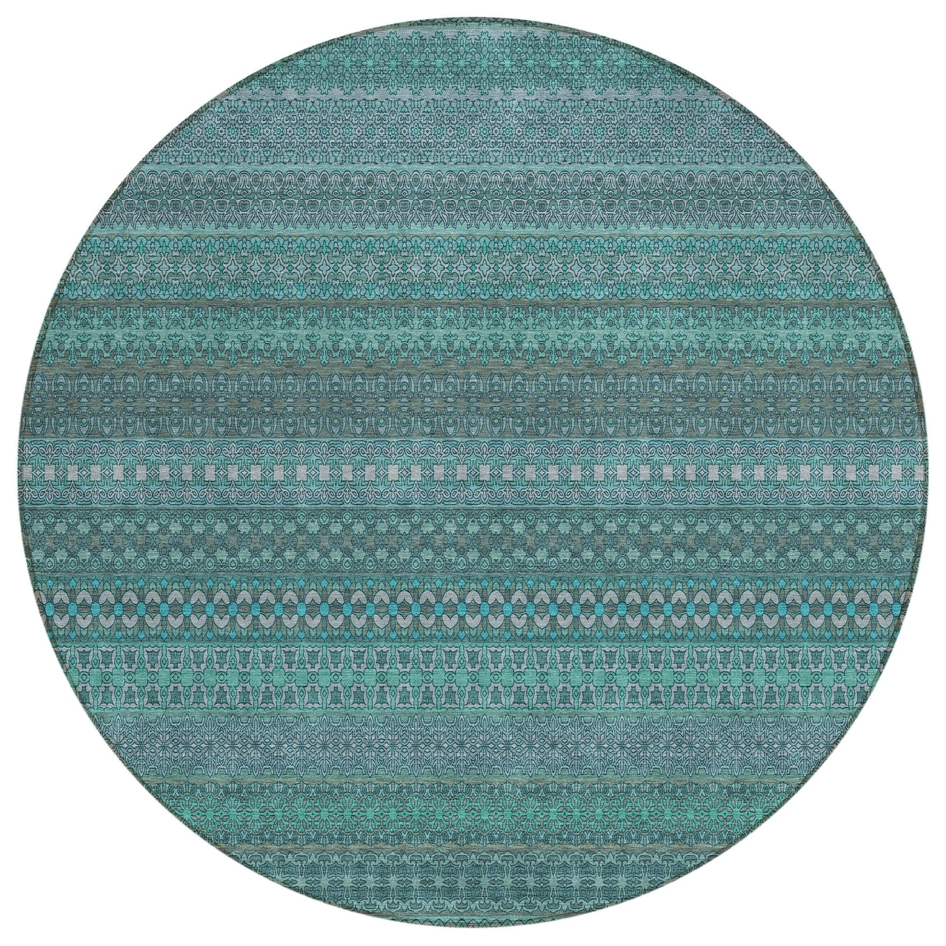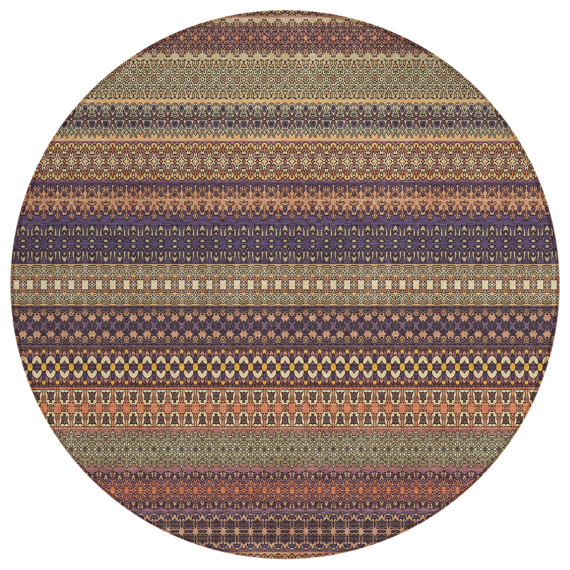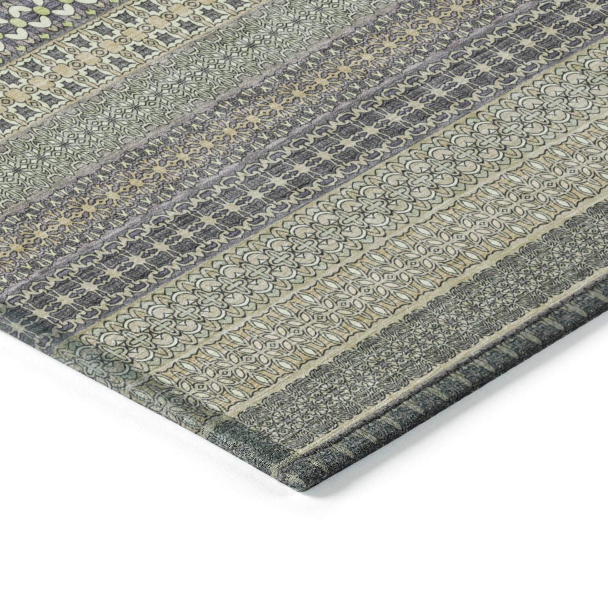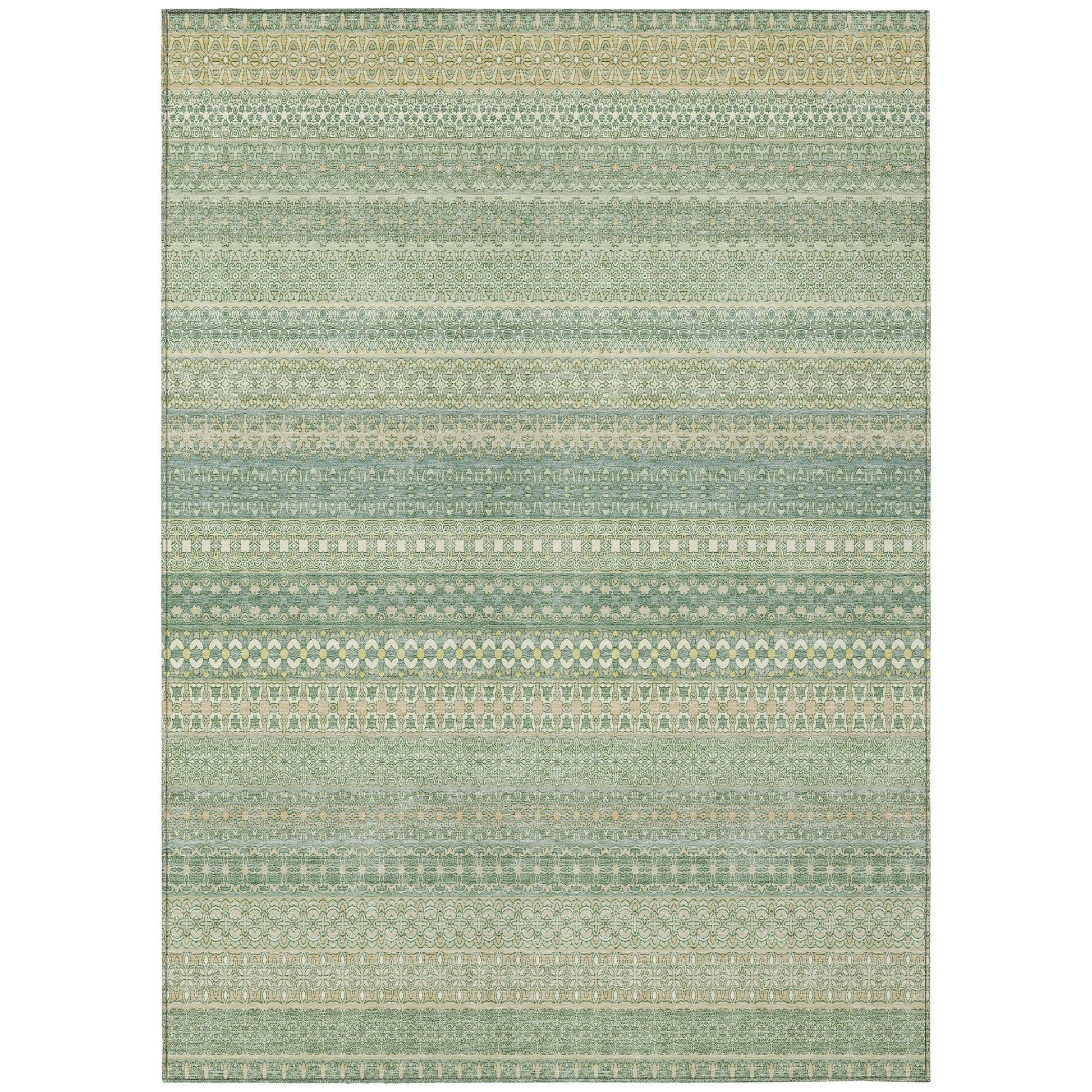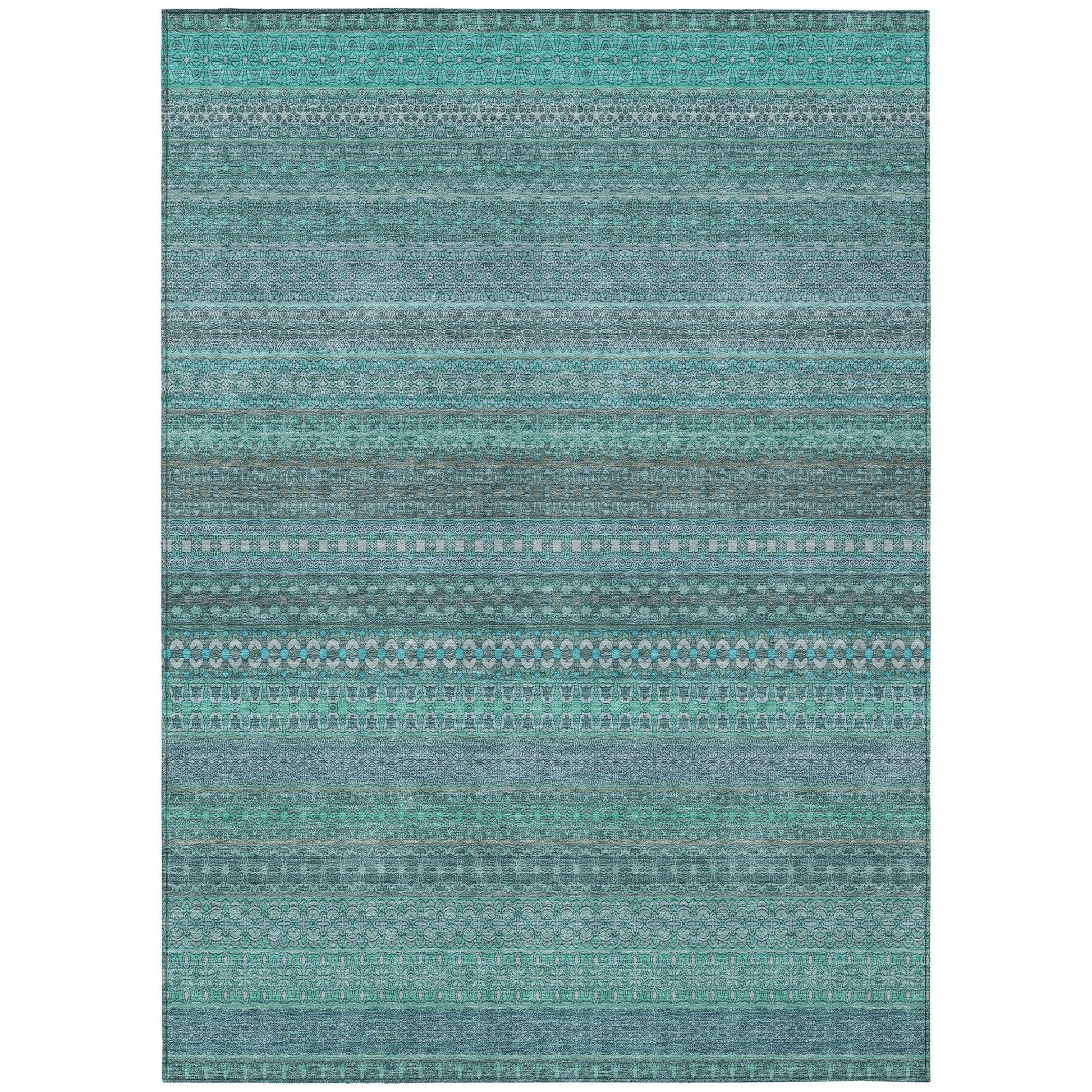Elevate your decor with our area rug, showcasing an eclectic mix of shapes and motifs that add a whimsical touch to your floor. This transitional striped rug is a perfect blend of style and fun. With UV stabilization, it can be confidently placed indoors or outdoors. The ultra-thin construction includes an incorporated non-skid backing, providing stability and eliminating the need for a separate rug pad. The ultra thin profile allows for fast drying after a rainfall or outdoor cleaning. It's machine-washable and designed to be family and pet-friendly, making it a practical choice for any home. Larger rug sizes may not fit into a residential washing machine. They may be washed in a commercial size washing machine or hosed-off outside with mild soap and water. Air-dry, do not machine dry. All rugs exposed to long periods of intense and direct sunlight can experience loss of color over time. Our rugs perform best in covered outdoor areas and uncovered areas with lower hours of direct sunlight.