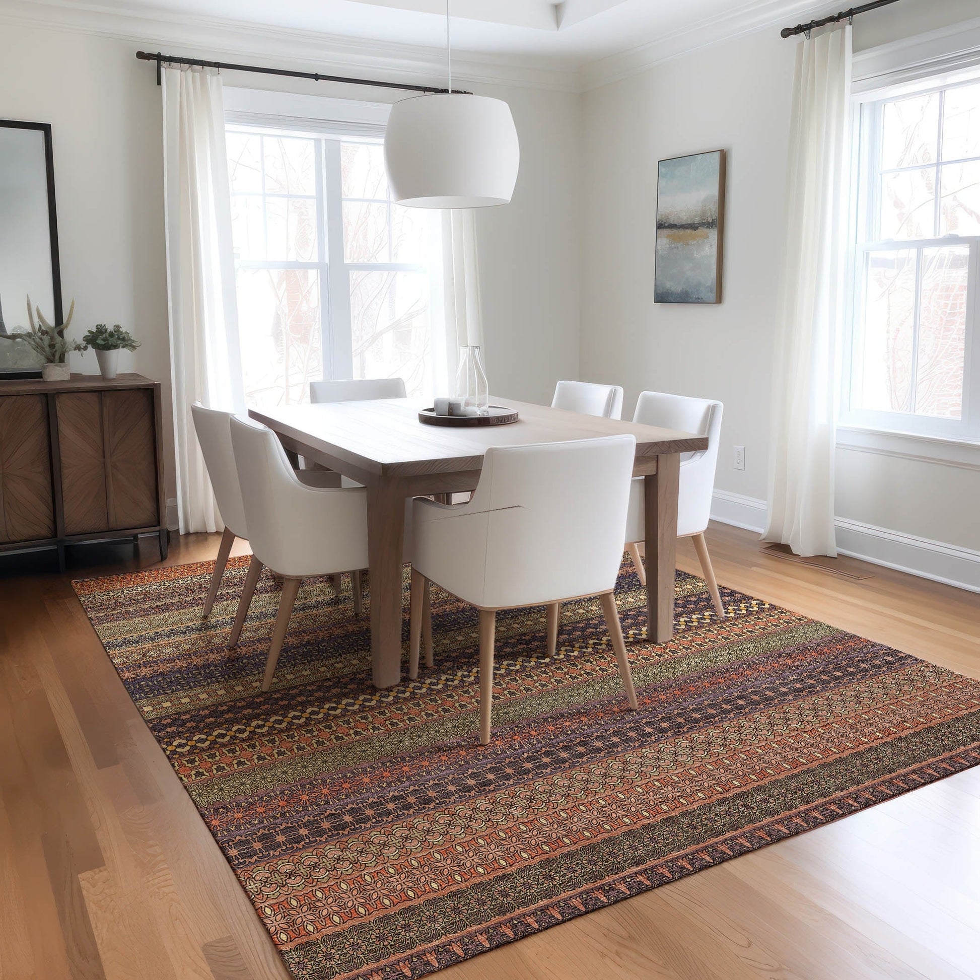 Machine Washable Indoor/ Outdoor Moroccan Stripes Chantille Rug