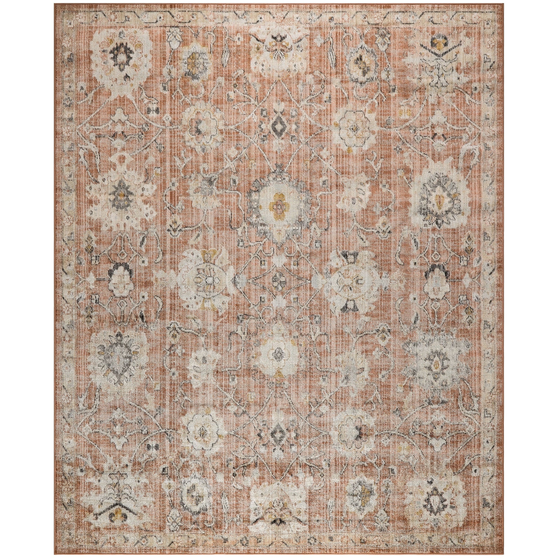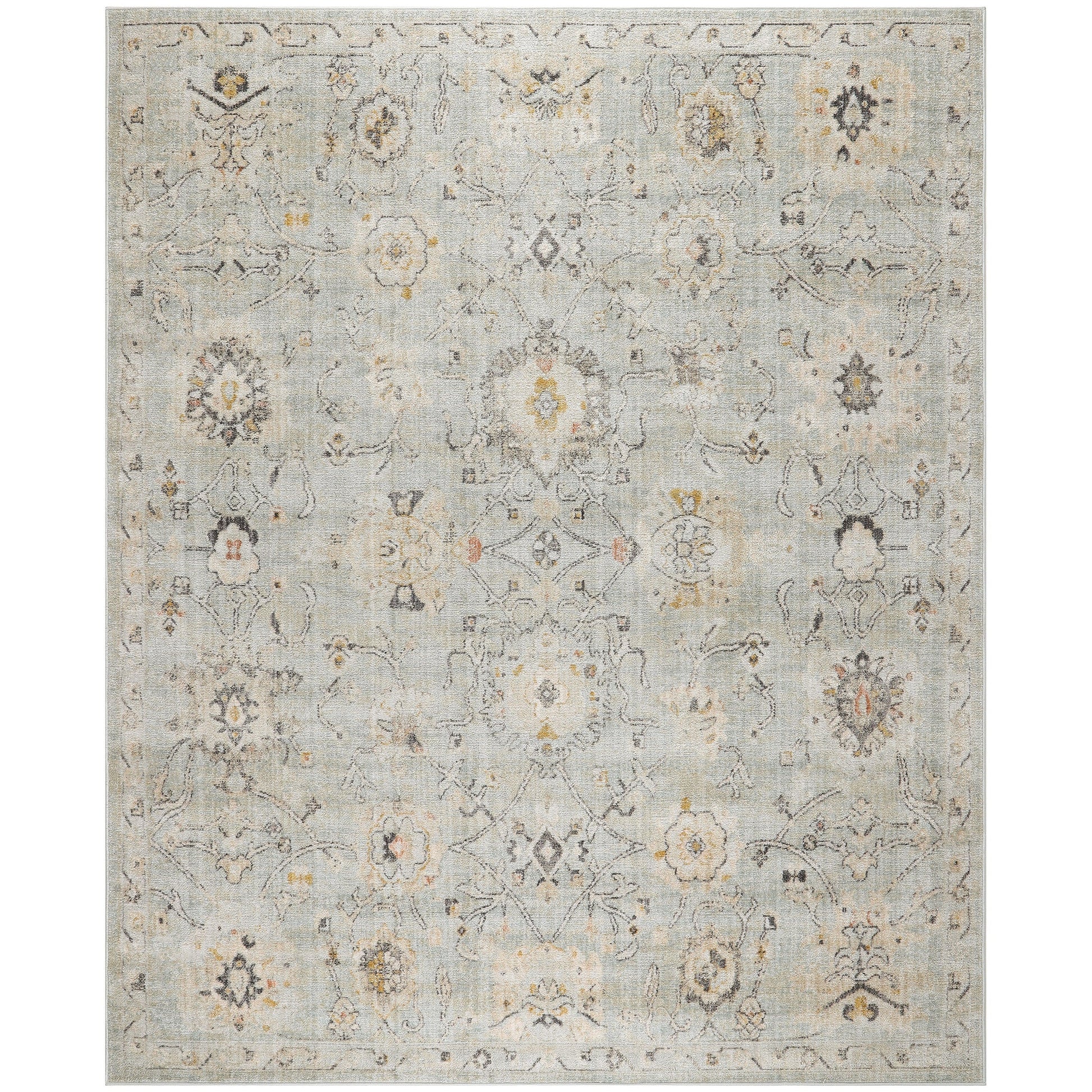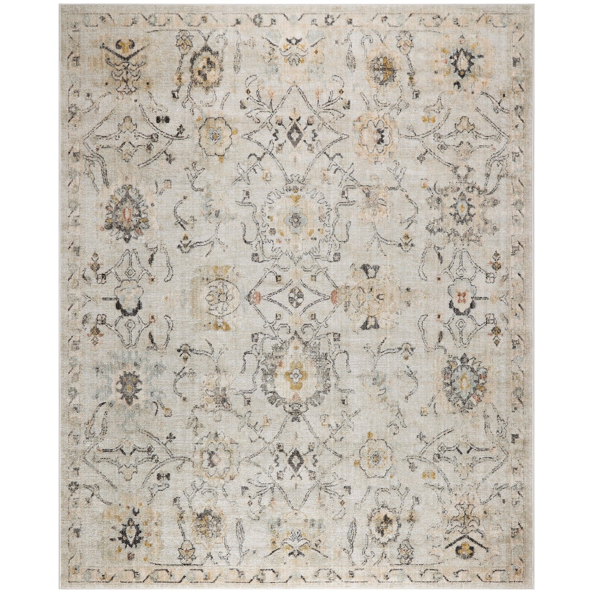 Ground your space in the rich history of the Oushak Home Collection. Radiant, Persian-inspired rug designs are on full display in soft colors that complement a variety of styles, including farmhouse, country, boho, and cottagecore d茅cor. Each pattern is precision crafted and finished with a tastefully worn effect that faithfully recreates the look of a treasured handmade heirloom. Machine-made from 100% polypropylene for worry-free maintenance - simply spot clean spills to keep your rug looking fresh.