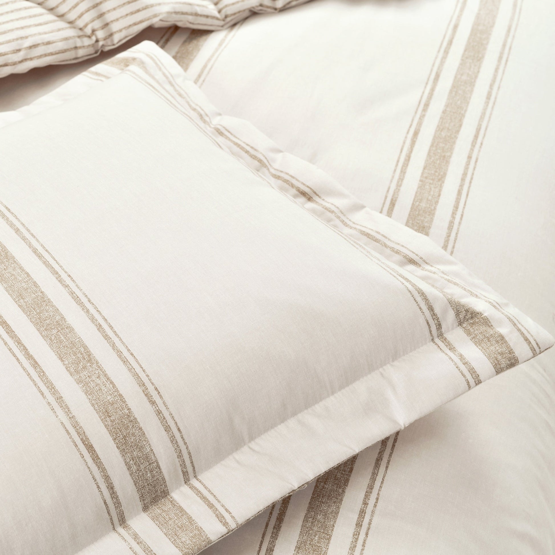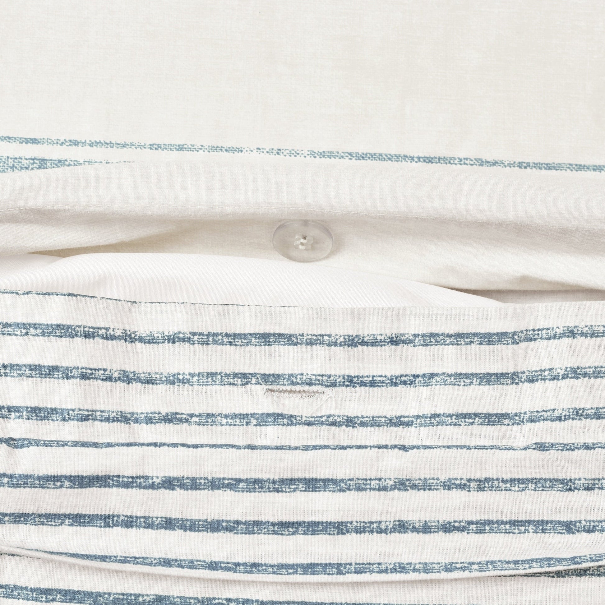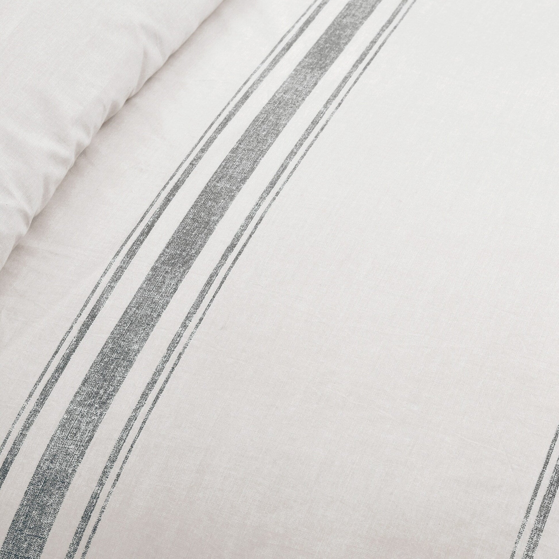 This duvet cover is OEKO-TEX® Standard 100 certified, which means the fabric, dyes and all components have been tested in an independent laboratory and certified against a list of more than 350 harmful substances. If you are a fan of farmhouse or cottage style, this duvet cover set can fit in perfectly with your tastes. It would make a lovely addition to a master bedroom, teen's bedroom, or guest bedroom. The 3-piece duvet cover set includes a reversible duvet and 2 matching reversible pillow shams. It is available in your choice of Full/Queen or King sizes. Because it’s reversible, you get two great looks in one set. The reverse features a pinstripe pattern. Either side is stylish on its own, but is also ideal for creating a layered look for your bed. This farmhouse style duvet cover set is made of 100% cotton fabric and is very soft to the touch. The weight will depend on the fill you choose. Use a heavier fill for cold winter nights and a lighter fill for warm, summer nights. Button closures keep your insert in place. For your convenience, this set is safe to machine wash and tumble dry. Refer to the care label for full care instructions.