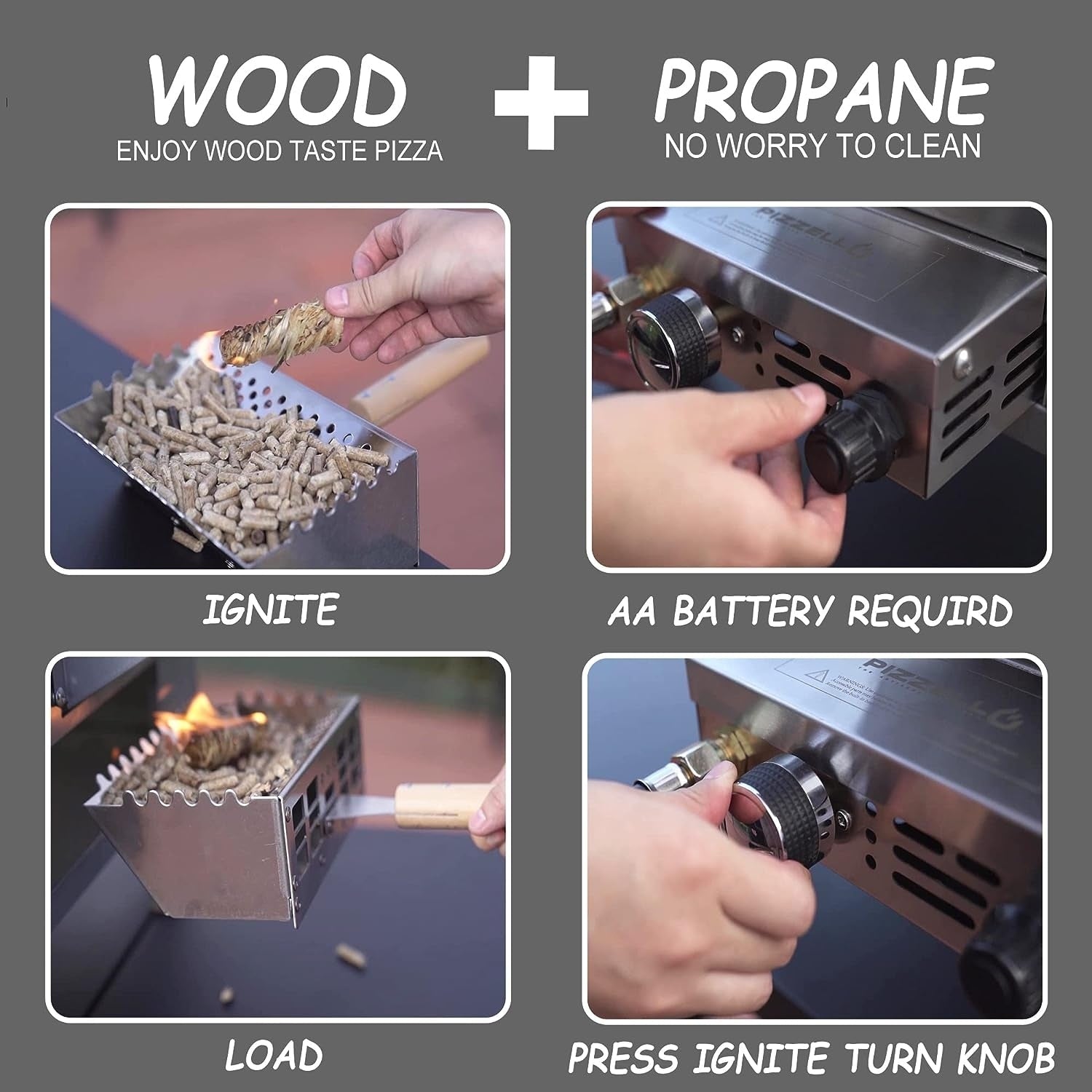 Four à pizza extérieur multi-combustible, cuiseur à pizza sur pierre avec brûleur à gaz et foyer à bois - 12 pouces