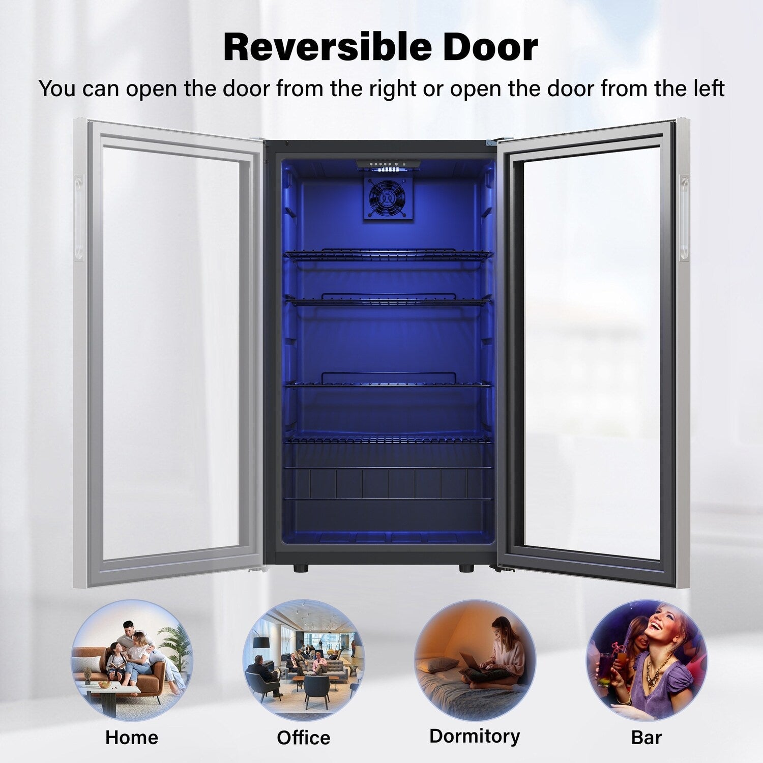 Design élégant avec protection UV : La porte en acier inoxydable et le verre double vitrage à protection UV ajoutent non seulement une touche moderne à n'importe quelle pièce, mais protègent également vos boissons des rayons UV nocifs. Le design isolé et résistant à l'humidité garantit que les boissons restent fraîches, conservant ainsi leur saveur et leur qualité originales.