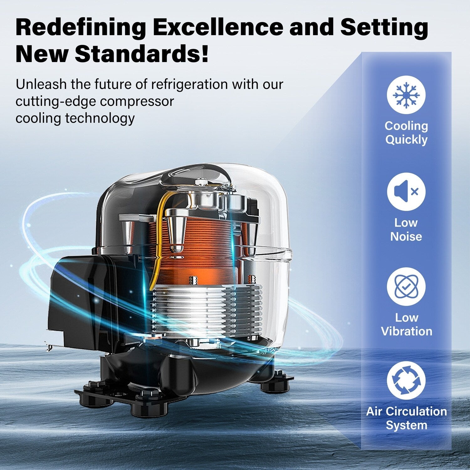 Fonctionnement silencieux et refroidissement uniforme : Conçu pour un fonctionnement silencieux à seulement 42 décibels, le refroidisseur de boissons Yeego est parfait pour les espaces calmes comme les chambres à coucher ou les bureaux. Son système de circulation d'air assure un refroidissement uniforme et constant dans tout le réfrigérateur, préservant ainsi le goût et la qualité de vos boissons.