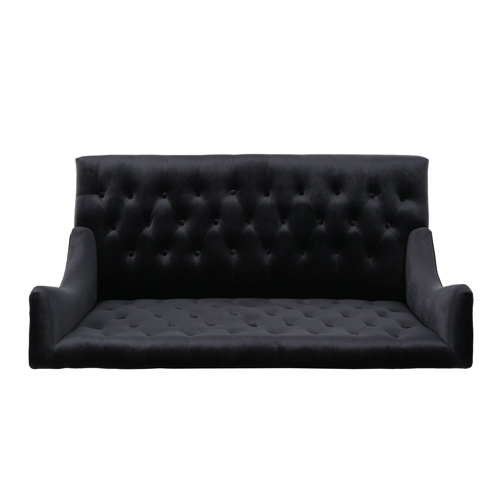 Black Velvet Button Tufted High Wingback Loveseat Sofa