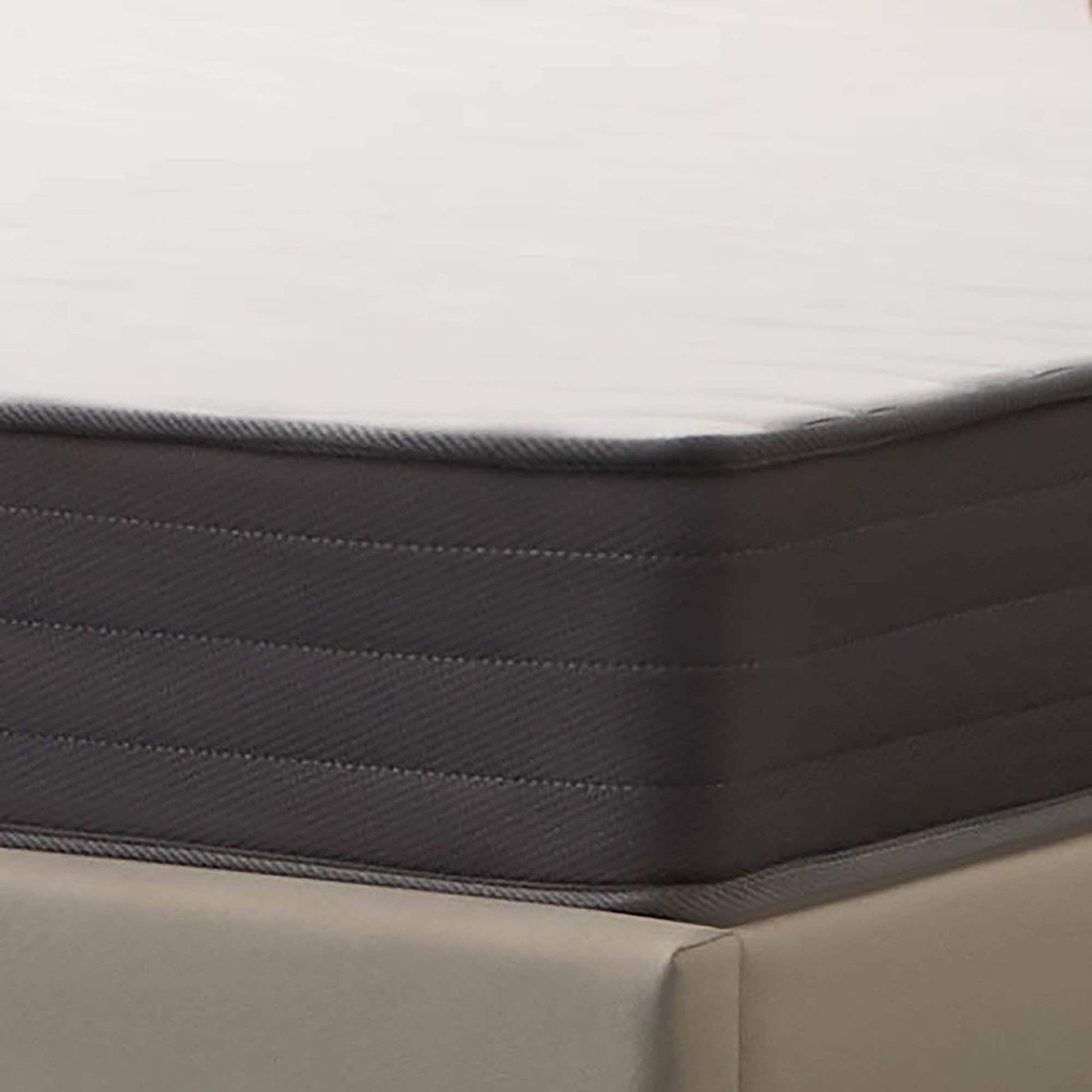MISE À JOUR DES MATELAS : Nous sommes en train de moderniser l'apparence de nos matelas. Vous pourriez donc recevoir un matelas blanc avec un liseré bleu ou un matelas blanc avec un liseré gris ; dans tous les cas, vous profiterez du même confort hybride en mousse à mémoire de forme, doux et soutenant.