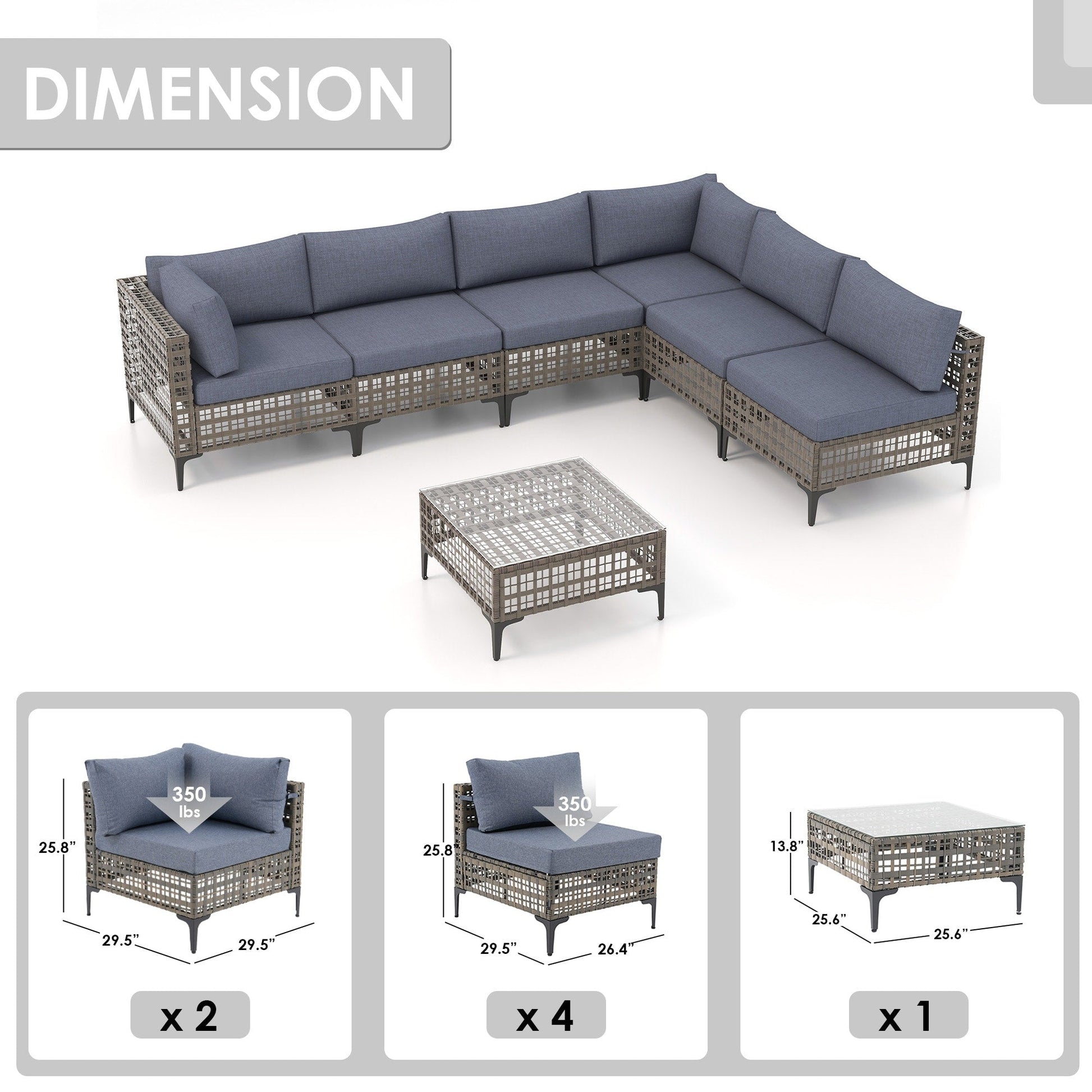 Ensemble de canapés modulaires d'extérieur pour 6 personnes avec coussins