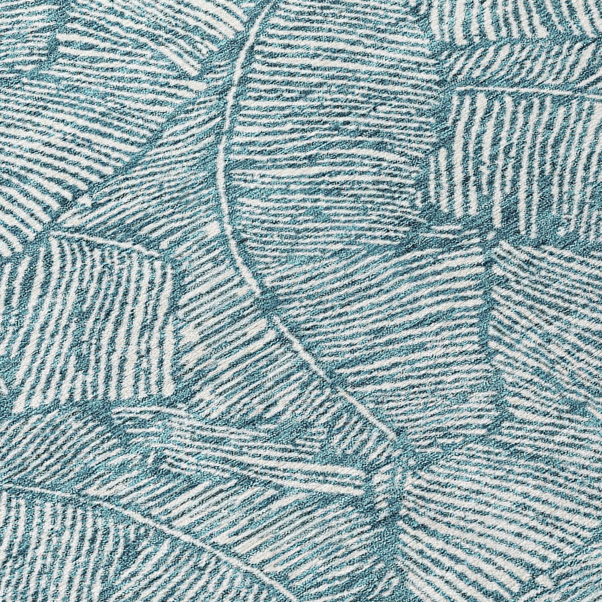 The area rug's large scaled leaves and monotone colorway provide a transitional and floral charm, perfect for enhancing any space. Its UV stabilization allows for use in any setting, while the ultra-thin build fits perfectly in your home. Machine-washable and suitable for families with pets and children, this rug offers both beauty and functionality. The ultra thin profile allows for fast drying after a rainfall or outdoor cleaning. UV Stabilized For Indoor or Outdoor Use. All rugs exposed to long periods of intense and direct sunlight can experience loss of color over time. Our rugs perform best in covered outdoor areas and uncovered areas with lower hours of direct sunlight. Larger rug sizes may not fit into a residential washing machine. They may be washed in a commercial size washing machine or hosed-off outside with mild soap and water. Air-dry, do not machine dry. While each rug already has a non-skid backing, the necessity for additional cushion or room settings with high traction areas, may require an additional rug pad.