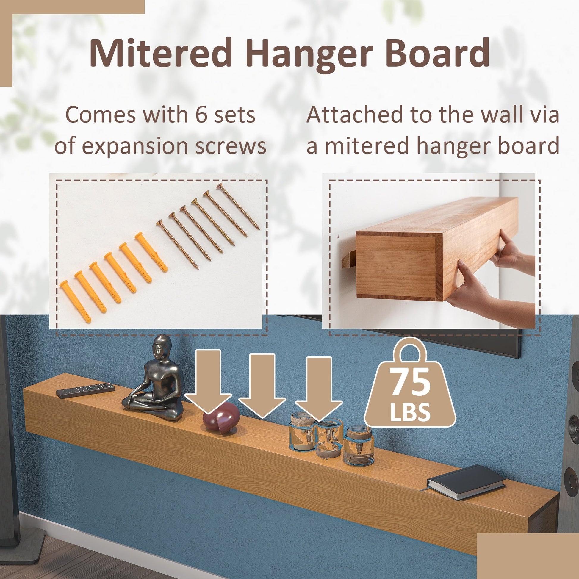 Étagère murale flottante pour cheminée en pin massif